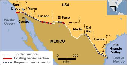Map of mexican border