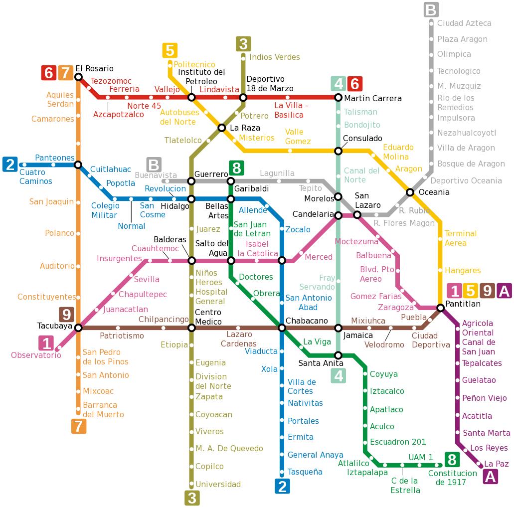Metro map Mexico. Mexico metro map (Central America - Americas) to print. Mexico metro map (Central America - Americas) to download.