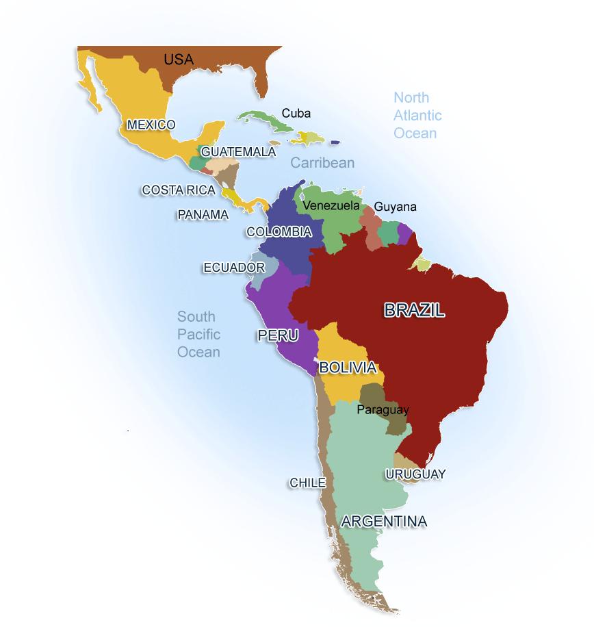 South america and Mexico map